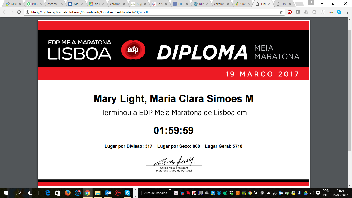 As inscrições para 2018 estarão disponíveis em breve no site (http://www.maratonaclubedeportugal.com/corrida/edp-meia-maratona-de-lisboa ). Para você, uma boa prova e aproveite a cidade dos nossos descobridores ! E em breve, divulgarei o vídeo no YouTube ! Mas por enquanto, vou turistando e me preparando para correr na cidade do Porto, no próximo sábado (25/3).